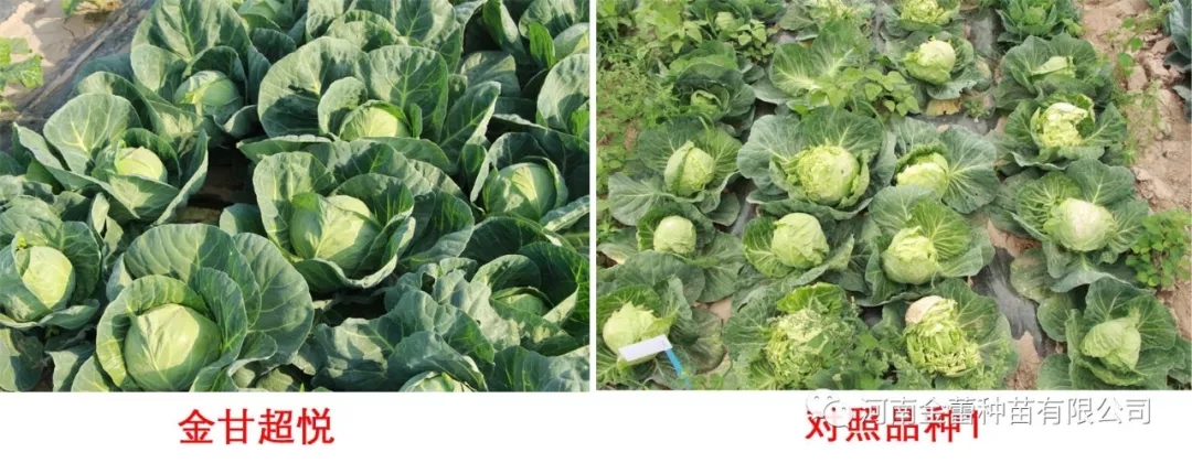 金甘超悅是早熟品種,定植后50-55天成熟,耐裂球。球葉新綠,葉球正圓,球心黃色;植株開展度45cm左右,外葉11-13片,單球重1.5kg左右。該品種中抗根腫病,適宜密植,長勢強(qiáng)健,口感佳,商品性好。