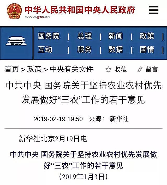 19日晚間,中共中央、國務院發(fā)布的《關于堅持農(nóng)業(yè)農(nóng)村優(yōu)先發(fā)展 做好“三農(nóng)”工作的若干意見》(簡稱《意見》)指出,今明兩年是全面建成小康社會的決勝期,“三農(nóng)”領域有不少必須完成的硬任務,全文11000多字的文件對農(nóng)村改革發(fā)展提出的新要求,全面推進鄉(xiāng)村振興,確保順利完成到2020年承諾的農(nóng)村改革發(fā)展目標任務。