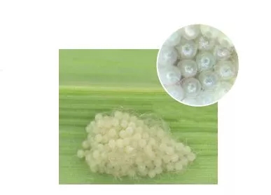 卵:通常 100 ~ 200 粒堆積成塊狀,多由 白色鱗毛覆蓋,初產(chǎn)時(shí)為淺綠或白色,孵 化前漸變?yōu)樽厣?。卵粒直?0.4m m , 卵高 0.3m m。卵多產(chǎn)于葉片正面,玉米喇叭口 期多見于近喇叭口處。適宜溫度下,2 ~ 3d 孵化。