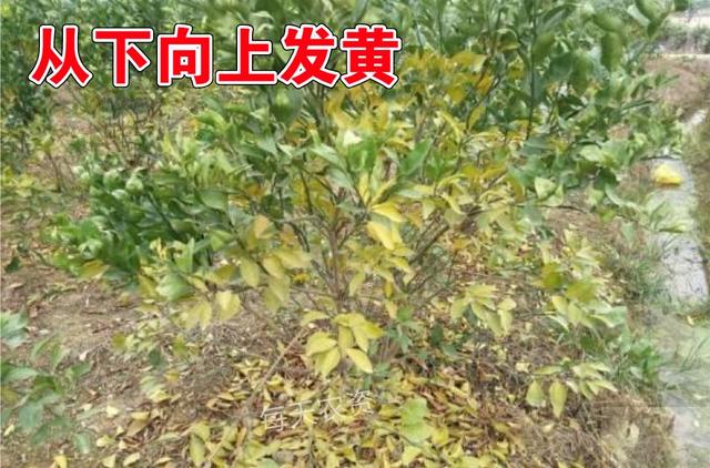 比如,柑橘缺氮黃化: